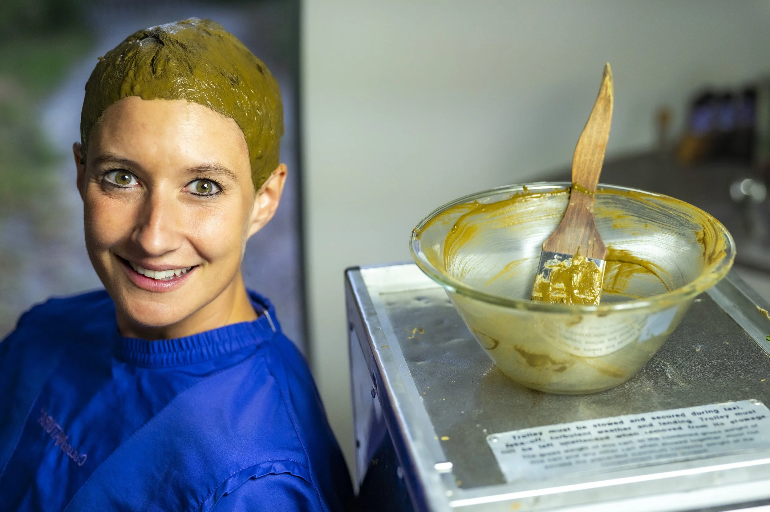 Ist eine Mischung aus reinen Stoffen der Flora, wie Birke, Henna, Hibiskus, Indigo, Kamille, Kurkuma, Leinsamen, Pfefferminze, Rhabarber, Rote Bete, Salbei, Wallnussschalen und einige mehr…